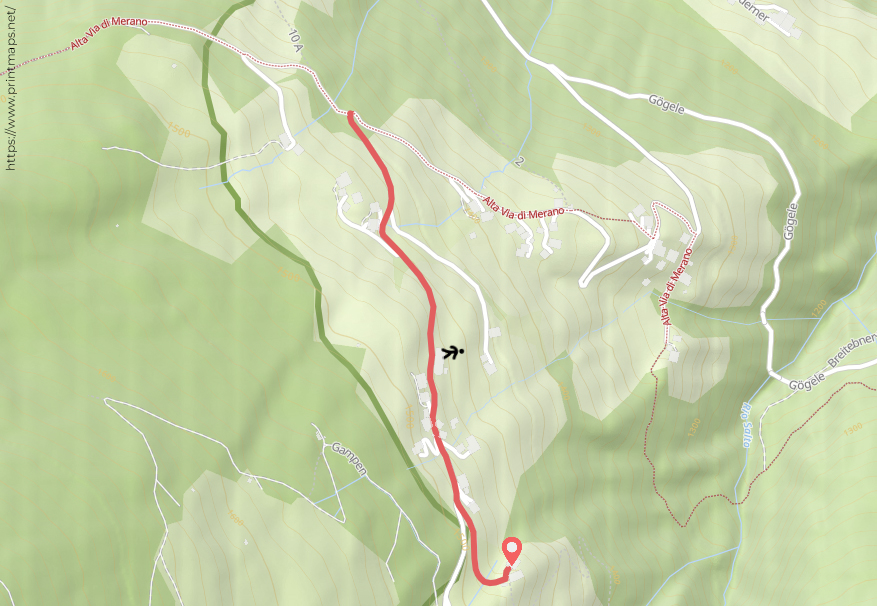 Ötztal → Passo Rombo → Moso (svoltare a destra in direzione Plata/Plan) → Plata → 400 m dopo il centro del paese (fermata autobus) svoltare a sinistra verso Ulfas